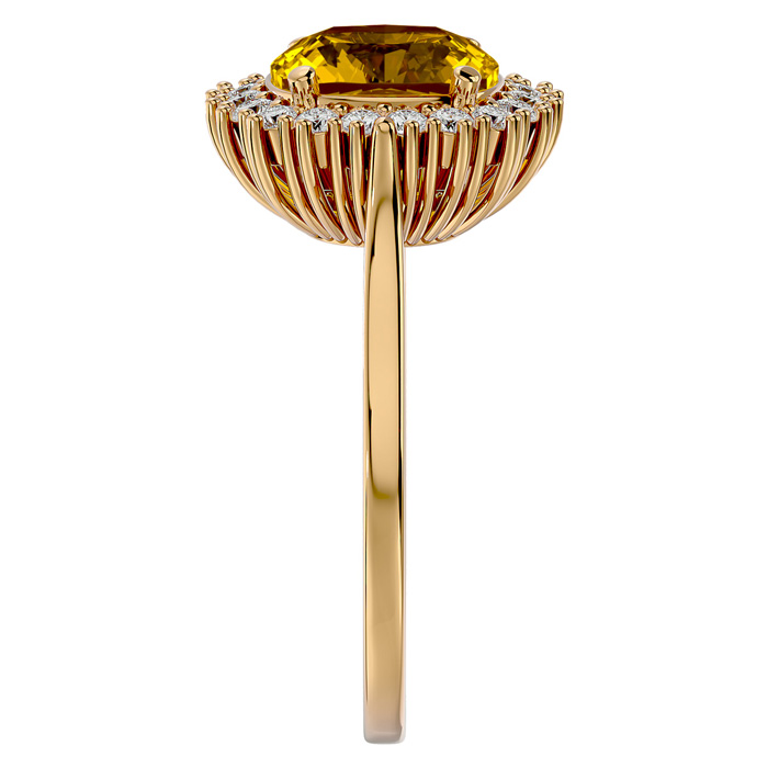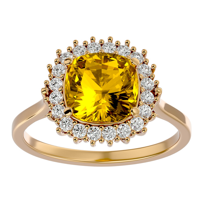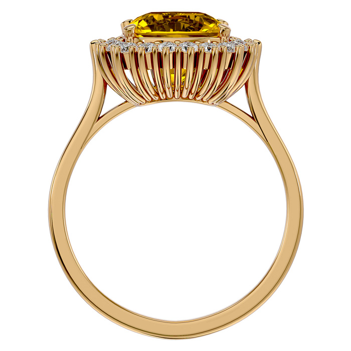 2 1/2 Carat Cushion Cut Citrine and Halo Diamond Ring In 14K Yellow Gold
