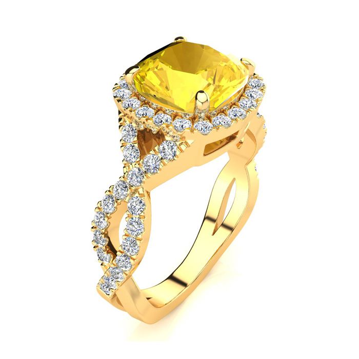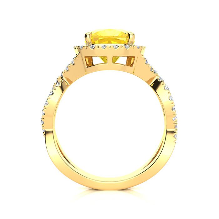2 1/2 Carat Cushion Cut Citrine and Halo Diamond Ring With Fancy Band In 14 Karat Yellow Gold
