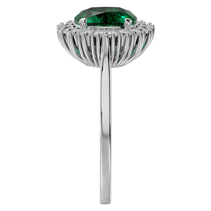 2 1/2 Carat Cushion Cut Emerald and Halo Diamond Ring In 14K White Gold