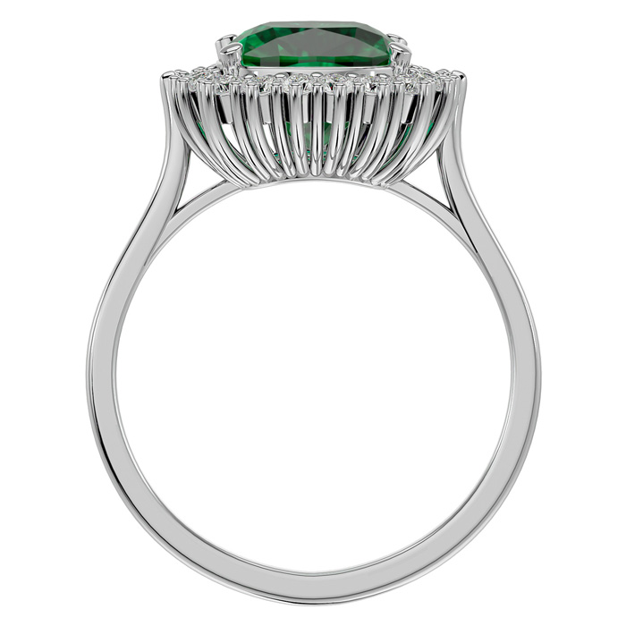 Retrograde Birthstones™ 2 1/2 Carat Cushion Cut Emerald and Halo Diamond Ring In 14K White Gold