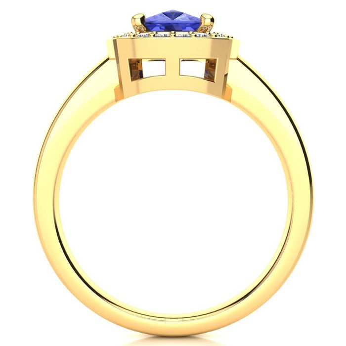2 1/2 Carat Cushion Cut Tanzanite and Halo Diamond Ring In 14 Karat Yellow Gold