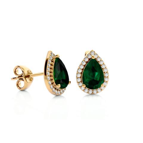 2 1/2 Carat Emerald and Diamond Pear Shape Stud Earrings In 14 Karat Yellow Gold