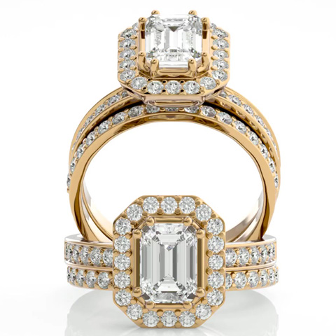 2 1/2 Carat Natural Emerald Cut Diamond Bridal Set In 14 Karat Yellow Gold
