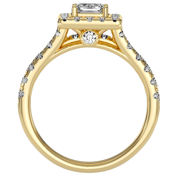 2 1/2 Carat Natural Emerald Cut Halo Diamond Bridal Set In 14 Karat Yellow Gold