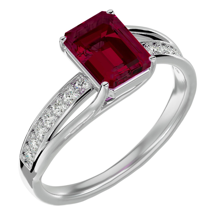 2 1/2 Carat Emerald Shape Ruby and Diamond Ring In 14 Karat White Gold