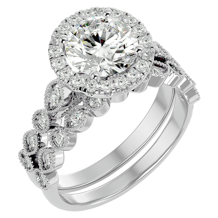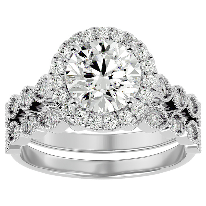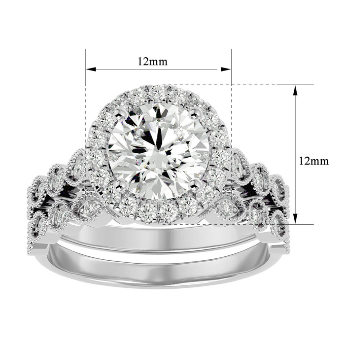 2 1/2 Carat Halo Diamond Bridal Set In 14 Karat White Gold