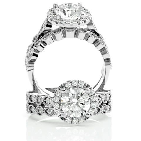 2 1/2 Carat Halo Diamond Bridal Set In 14 Karat White Gold