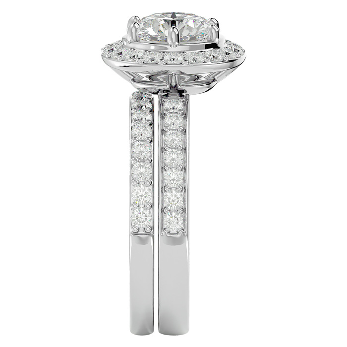 2 1/2 Carat Halo Diamond Bridal Set In 14 Karat White Gold With 1 1/2 Carat Center Diamond