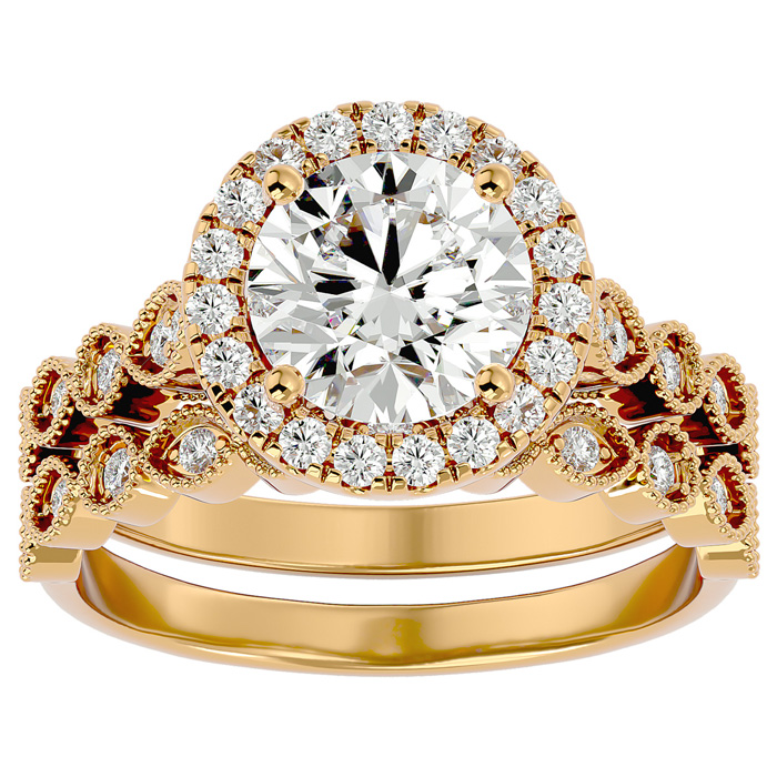 2 1/2 Carat Halo Diamond Bridal Set In 14 Karat Yellow Gold