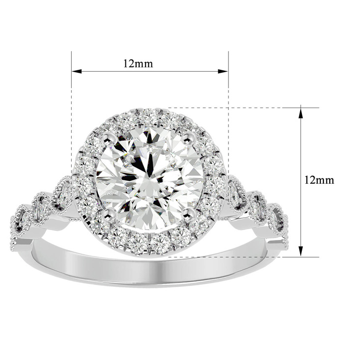 2 1/2 Carat Halo Diamond Engagement Ring In 14 Karat White Gold