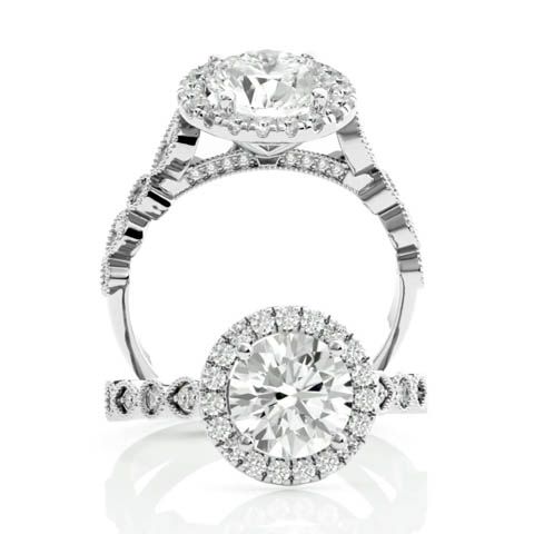 2 1/2 Carat Halo Diamond Engagement Ring In 14 Karat White Gold