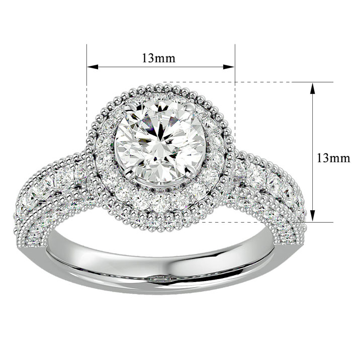 2 1/2 Carat Halo Diamond Engagement Ring In 14 Karat White Gold, SIZE 7