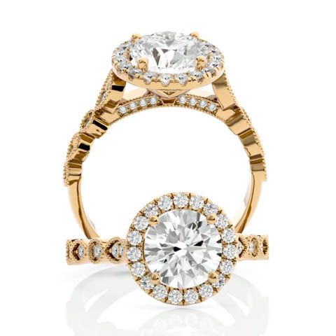 2 1/2 Carat Halo Diamond Engagement Ring In 14 Karat Yellow Gold