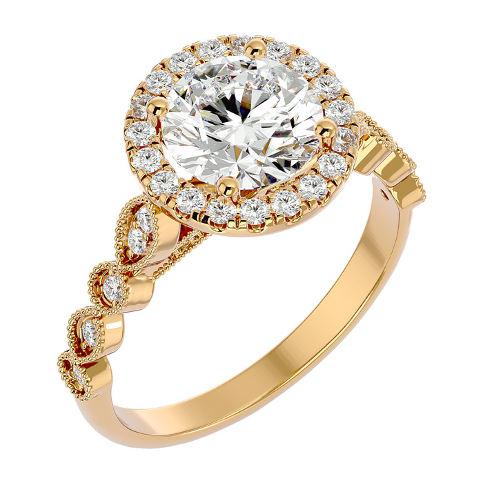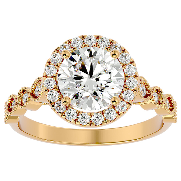 2 1/2 Carat Halo Diamond Engagement Ring In 14 Karat Yellow Gold