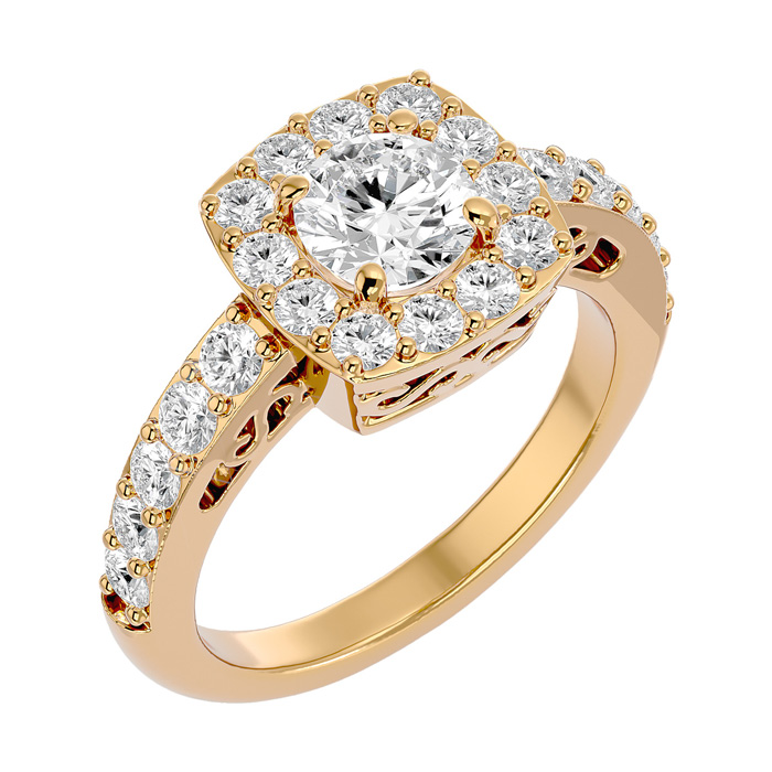 2 1/2 Carat Halo Diamond Engagement Ring In 14 Karat Yellow Gold