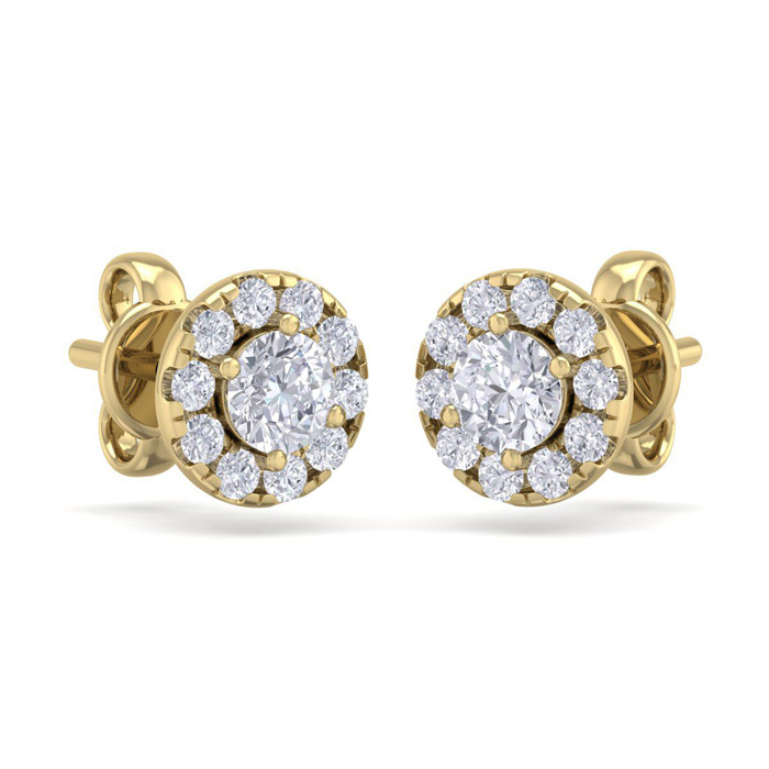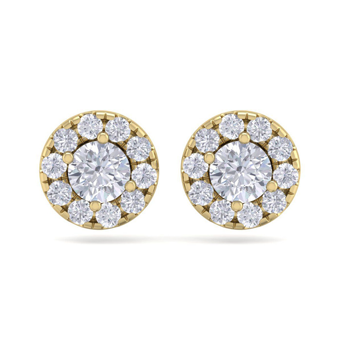 2 1/2 Carat Lab Grown Diamond Halo Stud Earrings In 14 Karat Yellow Gold