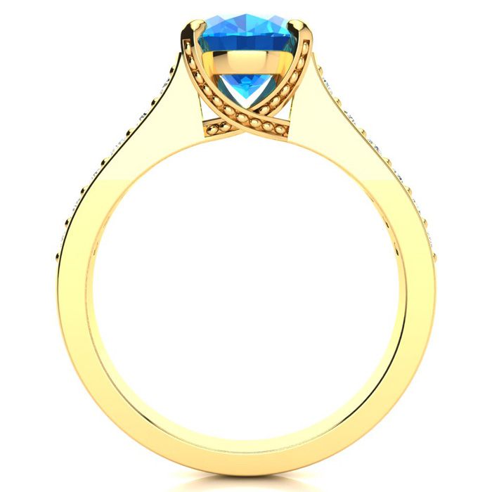 2 1/2 Carat Oval Shape Blue Topaz and Diamond Ring In 14 Karat Yellow Gold