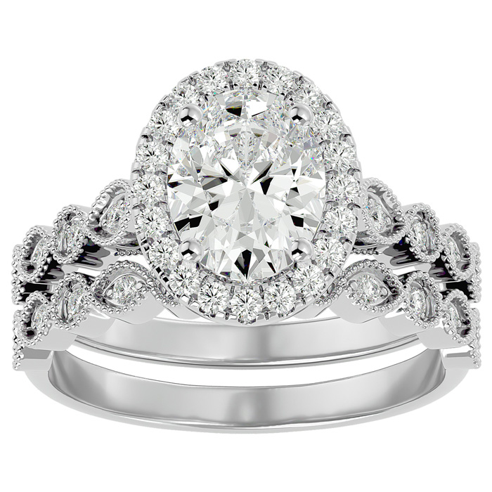 2 1/2 Carat Oval Shape Diamond Bridal Set In 14 Karat White Gold