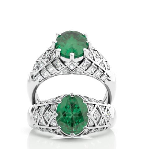 2 1/2 Carat Oval Shape Emerald and Diamond Ring In 10 Karat White Gold