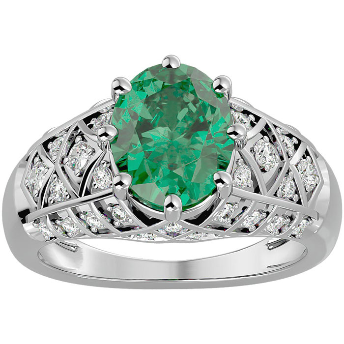 2 1/2 Carat Oval Shape Emerald and Diamond Ring In 10 Karat White Gold