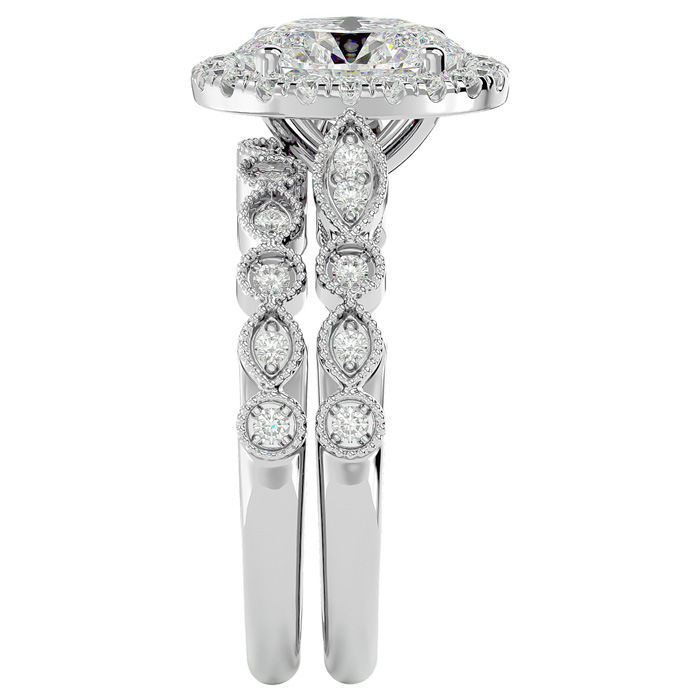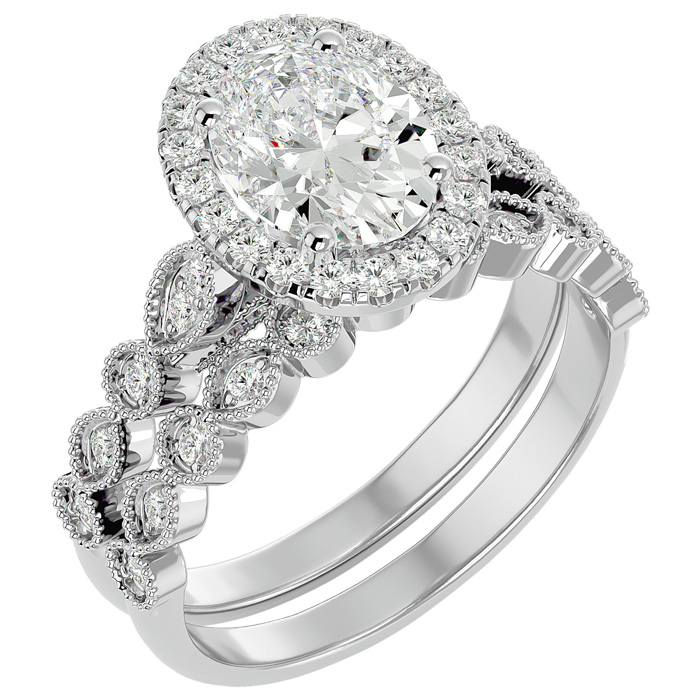 2 1/2 Carat Oval Shape Moissanite Bridal Set In 14 Karat White Gold