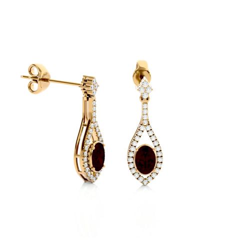 2 1/2 Carat Oval Shape Ruby and Diamond Dangle Earrings In 14 Karat Yellow Gold