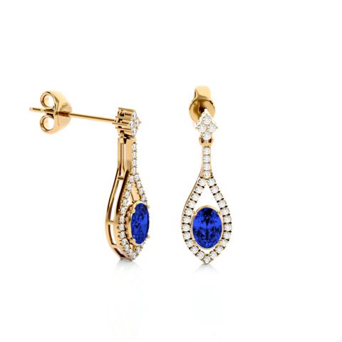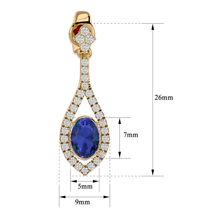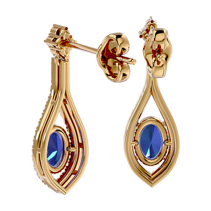 2 1/2 Carat Oval Shape Tanzanite and Diamond Dangle Earrings In 14 Karat Yellow Gold