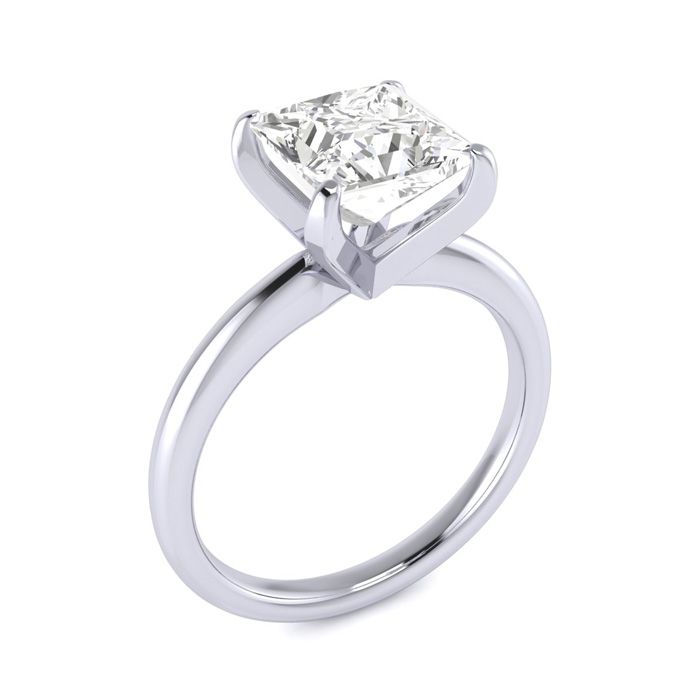 2 1/2 Carat Natural Princess Cut Diamond Solitaire Engagement Ring In 14K White Gold