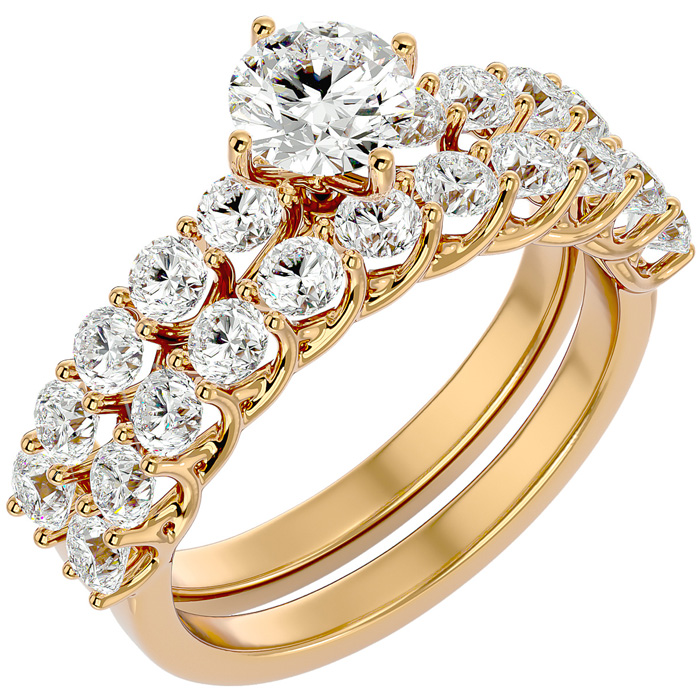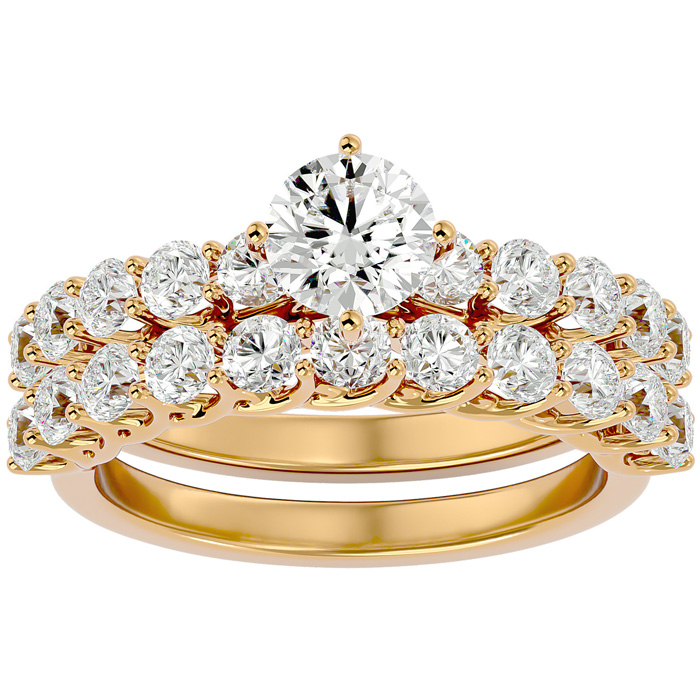 2 1/2 Carat Natural Round Shape Diamond Bridal Set In 14 Karat Yellow Gold