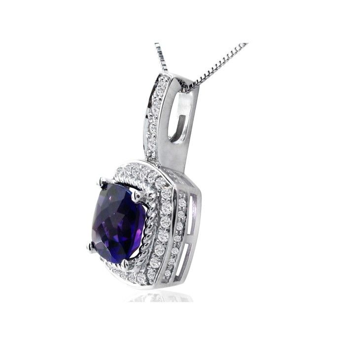 14k white gold, 2 1/2ct total gem weight amethyst and diamond pendant. Diamond content is 1/2ct in H/I color and I1 clarity.