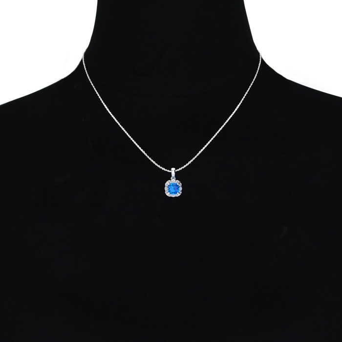2 1/2ct Cushion Cut Blue Topaz and Diamond Necklace In 10K White Gold