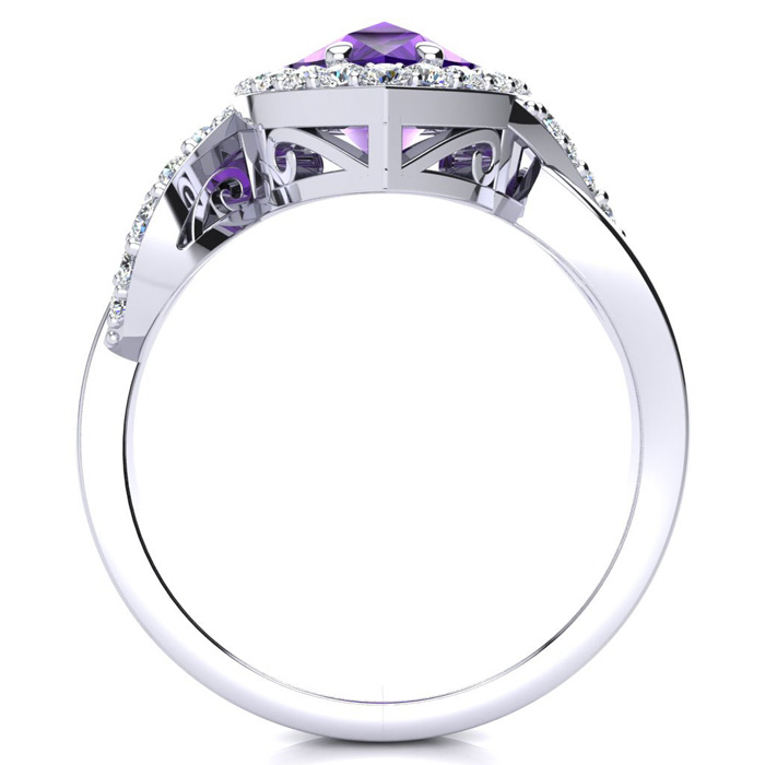 2 1/2ct Pear Shape Amethyst and Diamond Ring in 14K White Gold