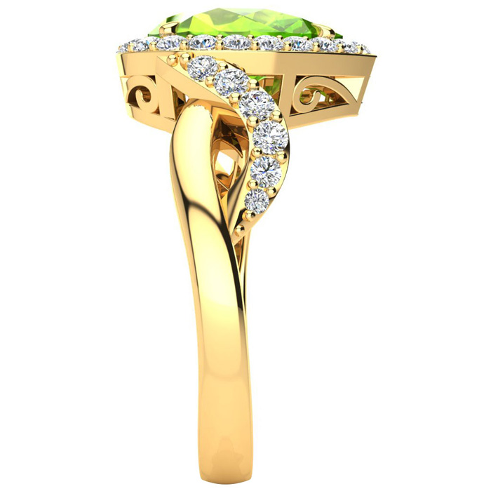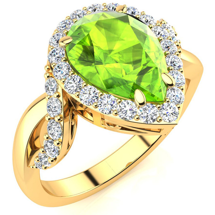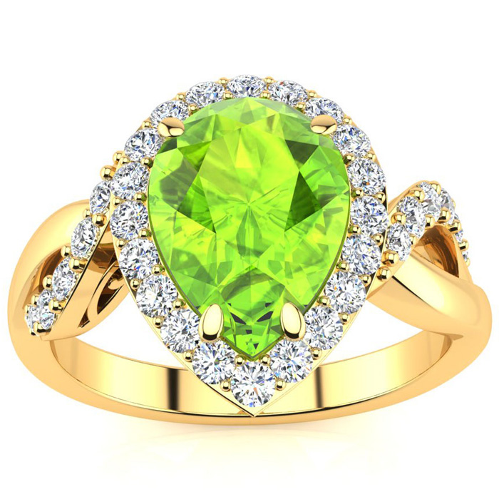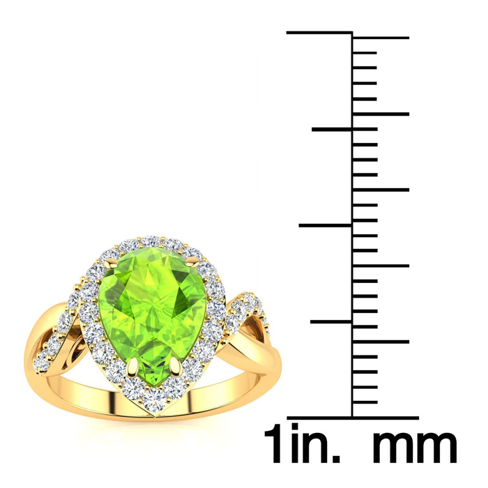 2 1/2ct Pear Shape Peridot and Diamond Ring in 14K Yellow Gold