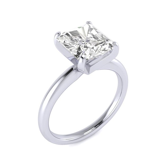 2 1/2ct Radiant Cut Diamond Solitaire Engagement Ring In 14K White Gold