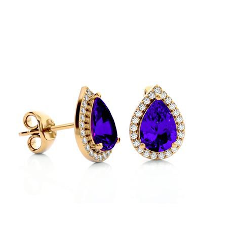 2 1/3 Carat Amethyst and Diamond Pear Shape Stud Earrings In 14 Karat Yellow Gold