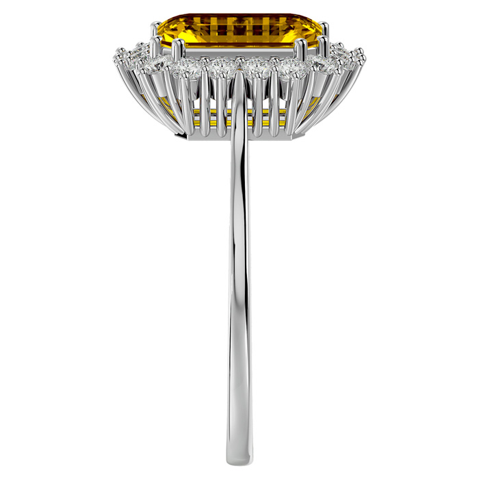 2 1/3 Carat Citrine and Halo Diamond Ring In 14K White Gold