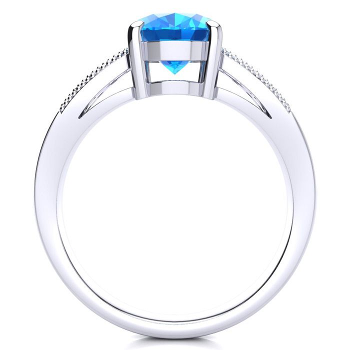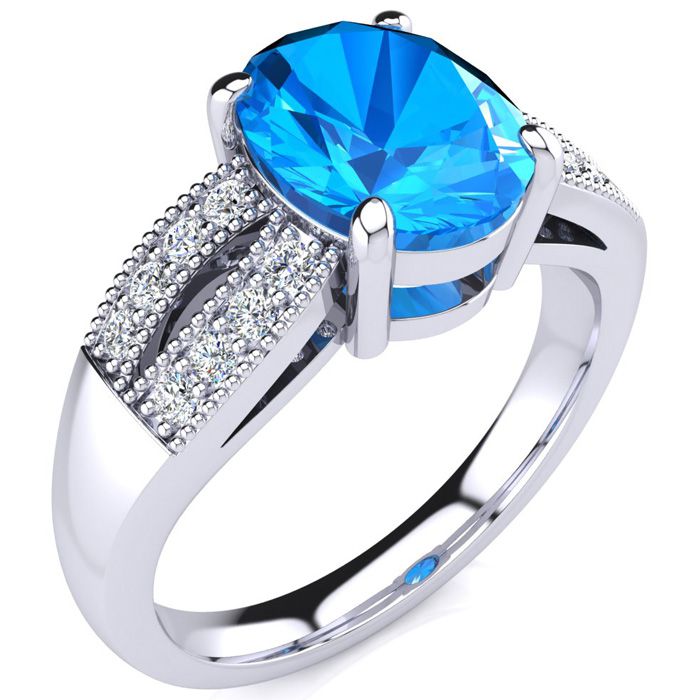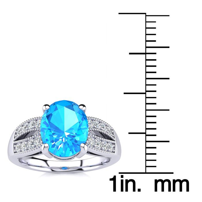 2 1/3 Carat Oval Shape Blue Topaz and Diamond Ring In 14 Karat White Gold