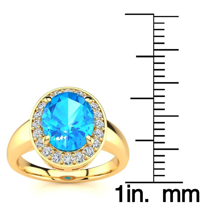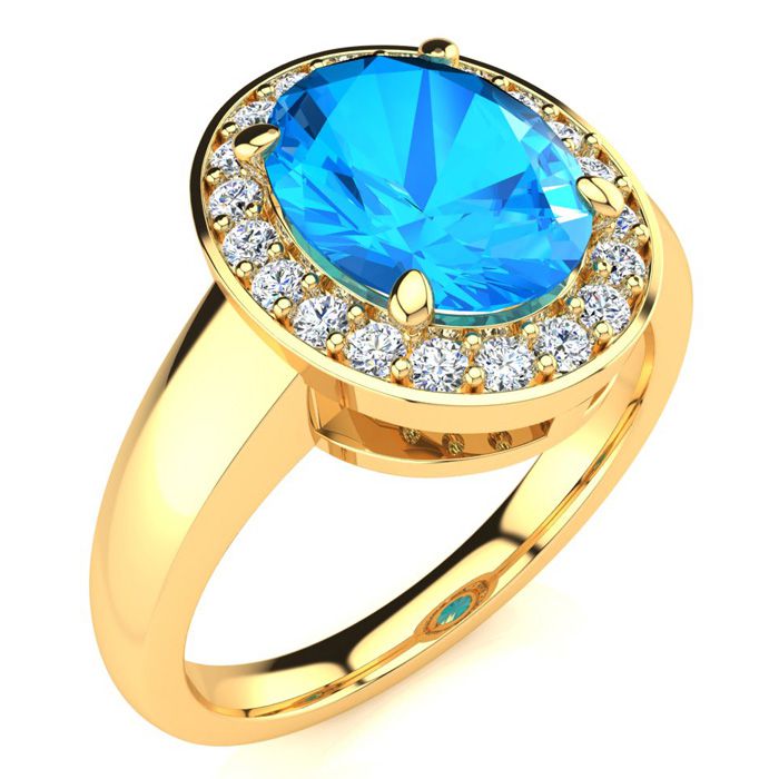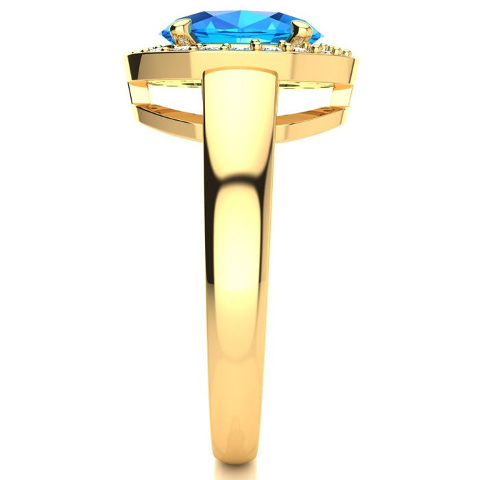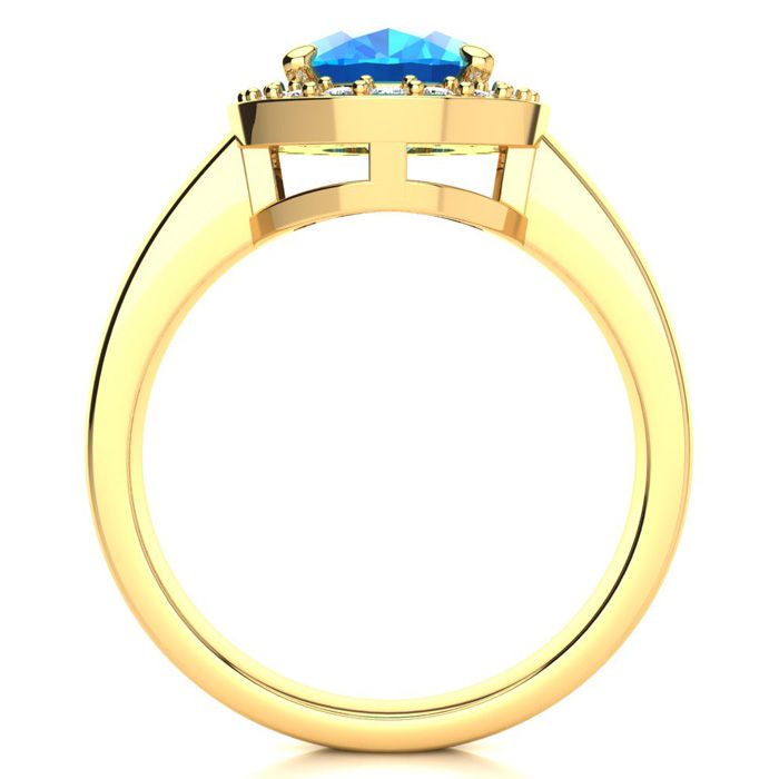 2 1/3 Carat Oval Shape Blue Topaz and Halo Diamond Ring In 14 Karat Yellow Gold