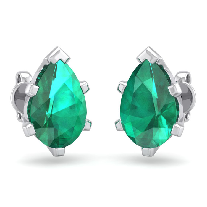 2 1/3 Carat Pear Shape Emerald Stud Earrings In Sterling Silver