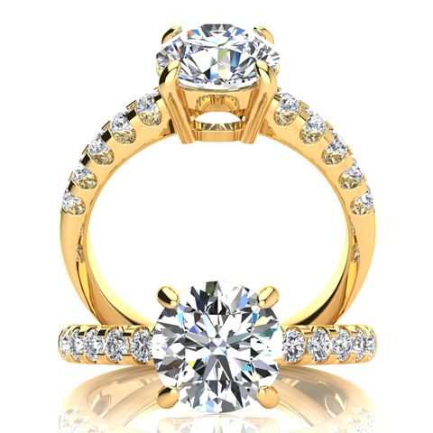 2 1/3 Carat Natural Traditional Diamond Engagement Ring with 2 Carat Natural Center Round Solitaire In 14 Karat Yellow Gold