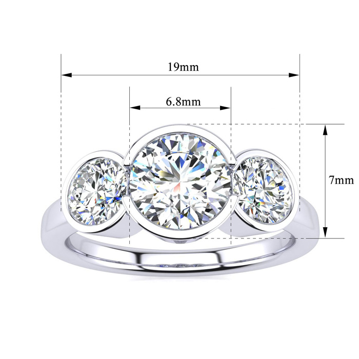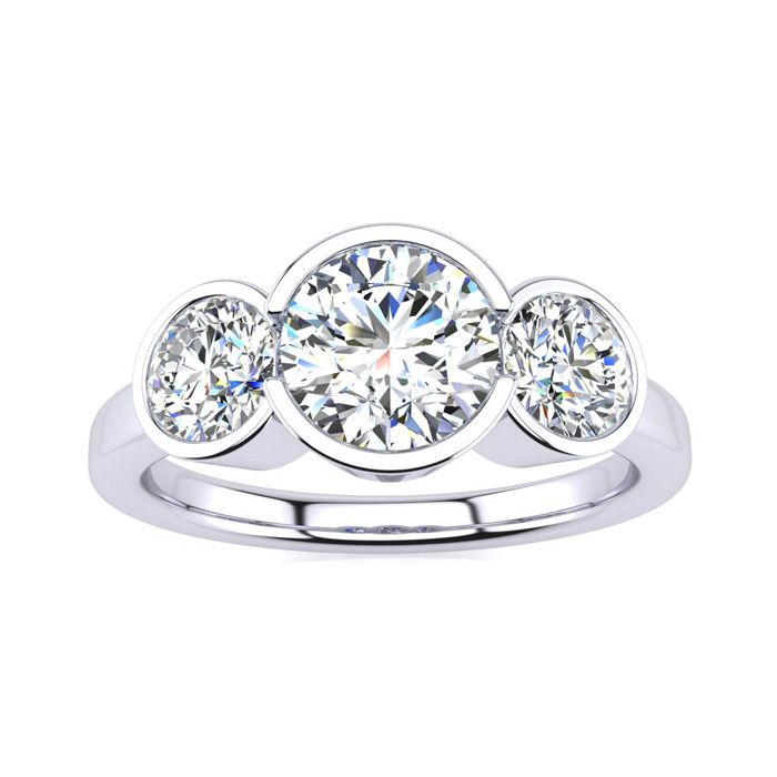 2 1/4 Carat Natural Bezel Set Three Stone Diamond Ring In 14K White Gold