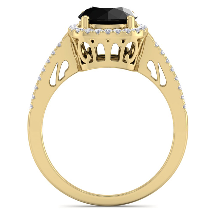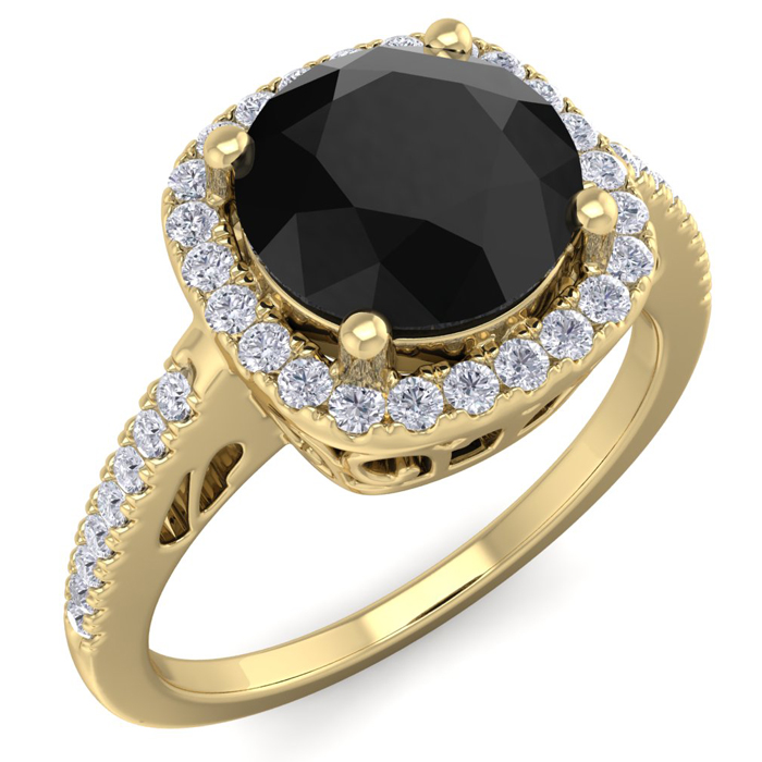 2 1/4 Carat Black and White Diamond Halo Ring In 14 Karat Yellow Gold