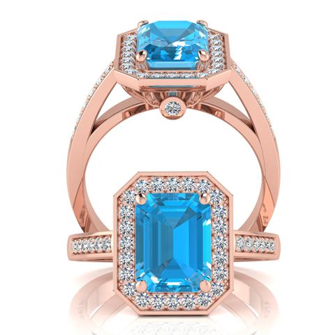1 1/2 Carat Octagon Shape Blue Topaz and Halo Diamond Ring In Sterling Silver$119.97 CODE SAVEBIG