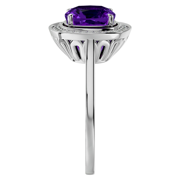 2 1/4 Carat Cushion Cut Amethyst and Halo Diamond Ring In 14K White Gold