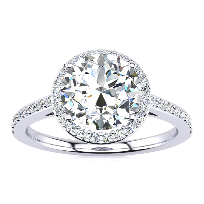 2 1/4 Carat Natural Halo Diamond Engagement Ring In 14K White Gold