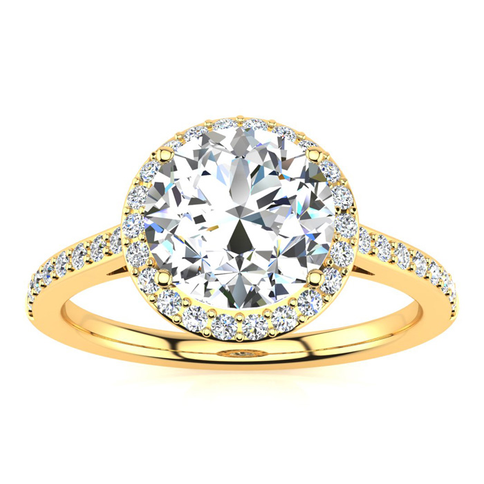 2 1/4 Carat Natural Halo Diamond Engagement Ring In 14K Yellow Gold
