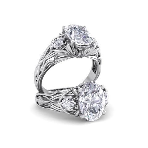 2 1/4 Carat Natural Oval Shape Diamond Intricate Vine Engagement Ring In 14 Karat White Gold