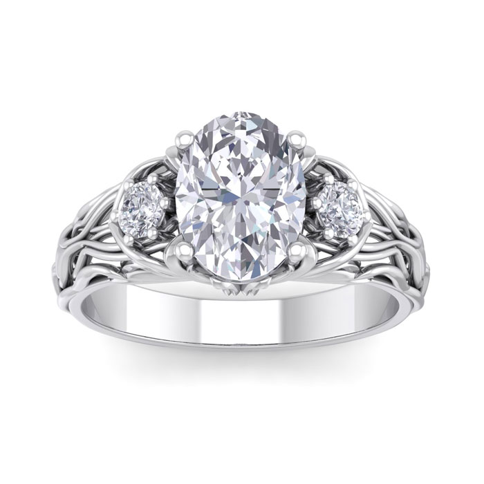 2 1/4 Carat Natural Oval Shape Diamond Intricate Vine Engagement Ring In 14 Karat White Gold