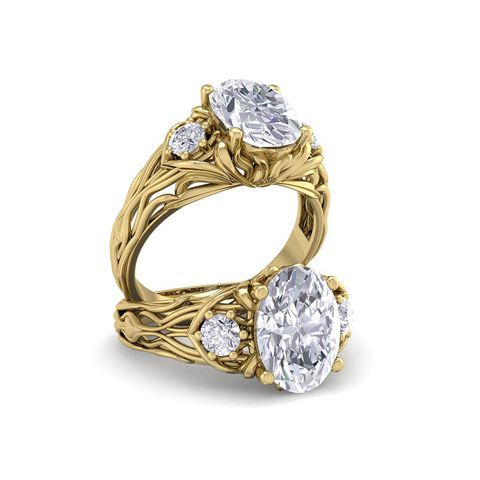 2 1/4 Carat Natural Oval Shape Diamond Intricate Vine Engagement Ring In 14 Karat Yellow Gold