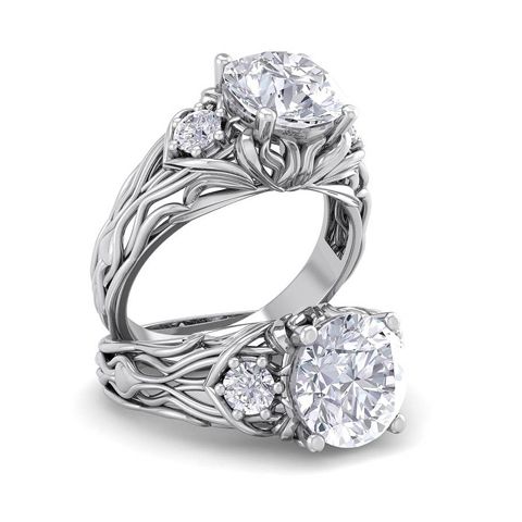 2 1/4 Carat Natural Round Shape Diamond Intricate Vine Engagement Ring In 14 Karat White Gold